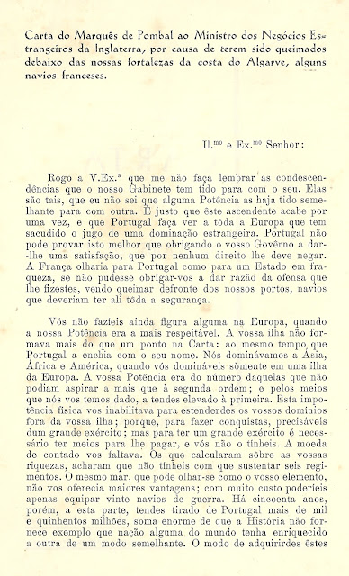 # CARTA DO MARQUÊS DE POMBAL